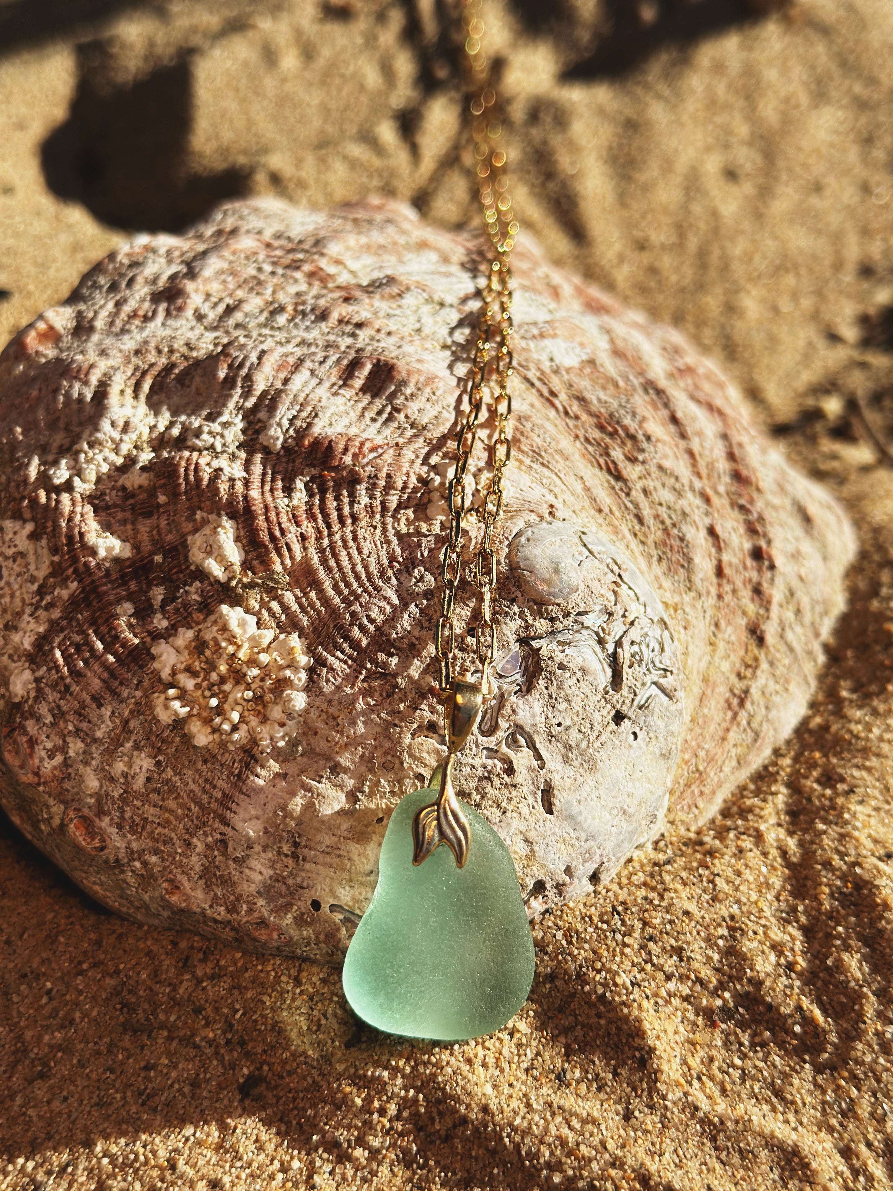 Brass Mermaid Sea Glass Pendant necklace in Yellow/Amber